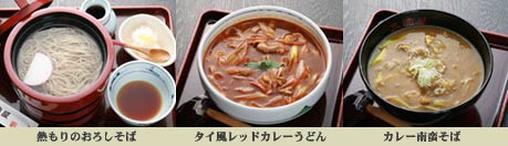 | 秋に一押しのそばは「舞茸天ぷら付きのこそば」。揚げたての舞茸の天ぷらが香ばしく、きのこそばに入れると、天ぷらのコクでさらに美味しさが増し、秋の味覚を満喫することが出来る。そばはビタミンB郡が豊富で胃腸にやさしく、疲れた体を回復してくれる。ハチンという血圧を下げる効果があり、栄養素も多く、血管を守るビタミンEもあり、健康を気遣う人にとっては欠かす事の出来ない食品なのだそうだ。それに女性のダイエットにも期待できるらしく、ちまたのダイエットフーズよりもそばの方がずっと健康的なダイエットとが出来るという、女性には大変うれしい話。三浦屋のそばを味わってさらに健康な体を作るのもいいかもしれない。 | |